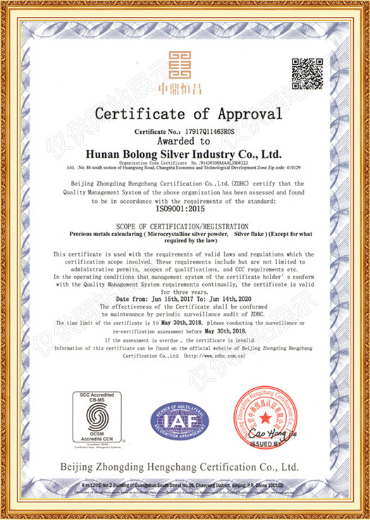 湖南波隆銀業(yè)有限公司是湖南波隆集團(tuán)股份有限公司的全資子公司,成立于2016年4月15日,注冊(cè)資金1000萬(wàn)。集白銀類(lèi)產(chǎn)品的研發(fā)、銷(xiāo)售于一體,年?duì)I收1.22億元。2017年6月底,湖南波隆銀業(yè)有限公司順利通過(guò)了ISO9001質(zhì)量體系管理認(rèn)證,并獲得了相關(guān)文件證書(shū),這標(biāo)志著波隆銀業(yè)逐步邁入規(guī)范化、標(biāo)準(zhǔn)化的現(xiàn)代企業(yè)管理軌道。