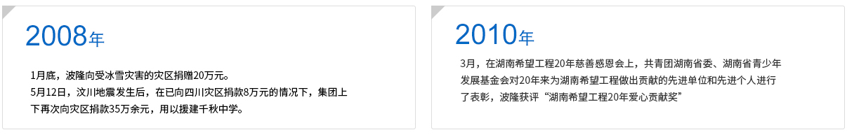 從創業生存到百花齊放,從企業的本能生長到高速發展,再到全面升級,波隆始終與時代共進步。基于企業公民精神,波隆致力于讓更多的人共享美好生活,持續投身公益活動,將愛心與善意向社會傳遞。