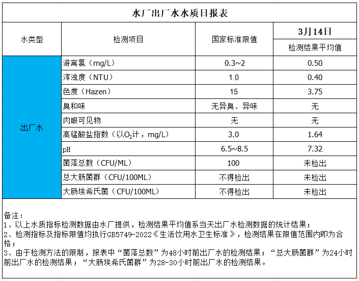 水廠出廠水水質(zhì)日報(bào)表(2025-3-14)