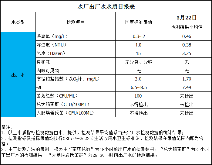 水廠出廠水水質(zhì)日?qǐng)?bào)表(2025-3-22)