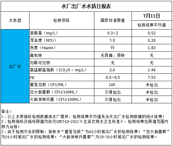 水廠出廠水水質(zhì)日?qǐng)?bào)表(2025-7-11)