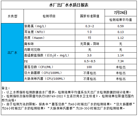 水廠出廠水水質(zhì)日?qǐng)?bào)表(2025-7-24)