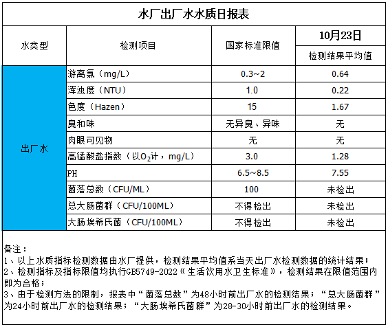 水廠出廠水水質(zhì)日報表(2025-10-23)