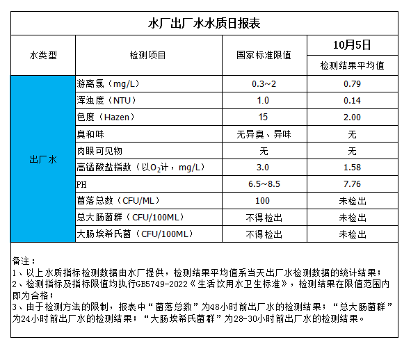 水廠出廠水水質日報表(2023-10-5)