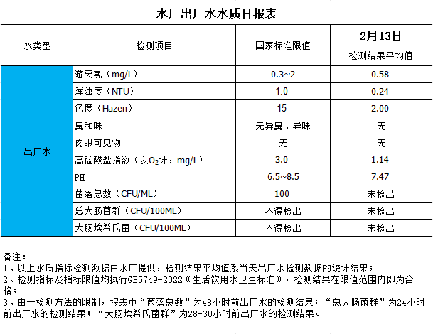 水廠出廠水水質(zhì)日報(bào)表(2024-2-13)