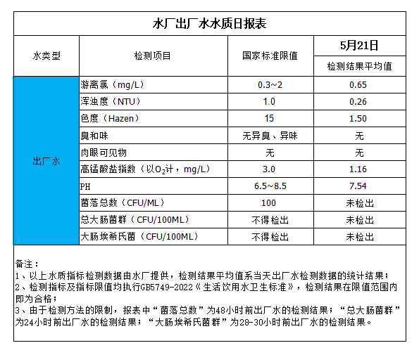 水廠出廠水水質日報表(2024-5-21)